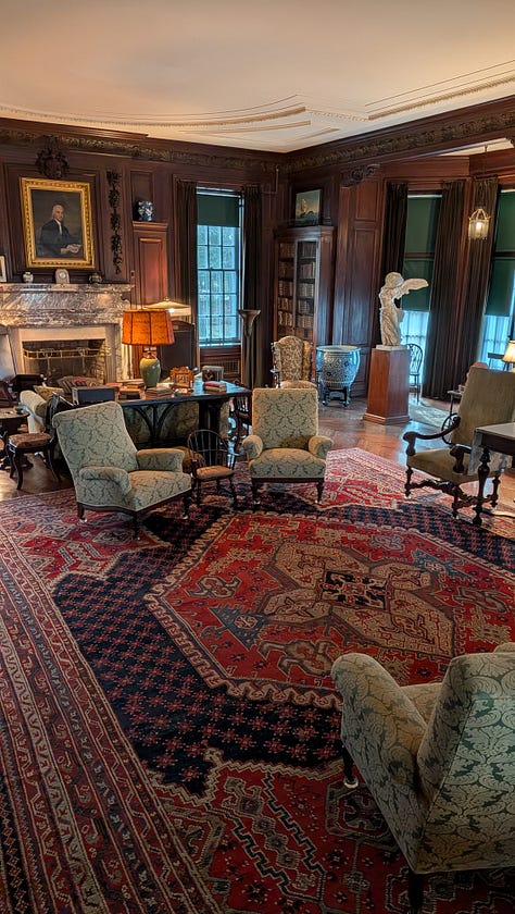 The next day, I took the wonderfully immersive tour of Springbrook, FDR’s childhood home, where he and Eleanor raised their children, and where he spent over 200 weekends during his Presidency. Springbrook has been operating as a museum since exactly one year after FDR’s death; Eleanor was its first official tour guide. They preserved the house in exactly the condition it was when the family was still living there, so it’s chock full of amazing period details, art, and furniture that was serious catnip to me. The whole estate at Hyde Park was left to the nation in FDR’s will, so it became public property the day after his death.